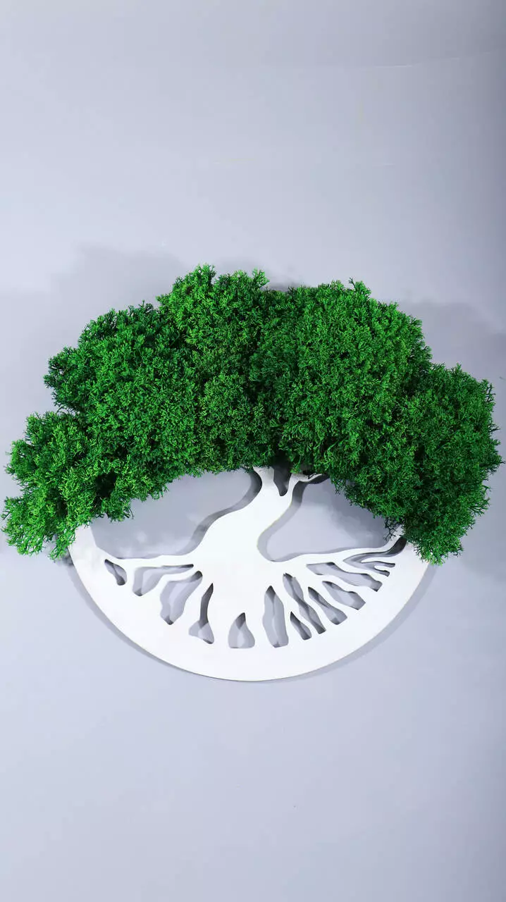 1. Материал: Основа панно изготовлена ​​из фанеры, которая выкрашена в белый цвет. Эта основа надежно удерживает стабилизированный мох и придает эстетичный вид изделия.