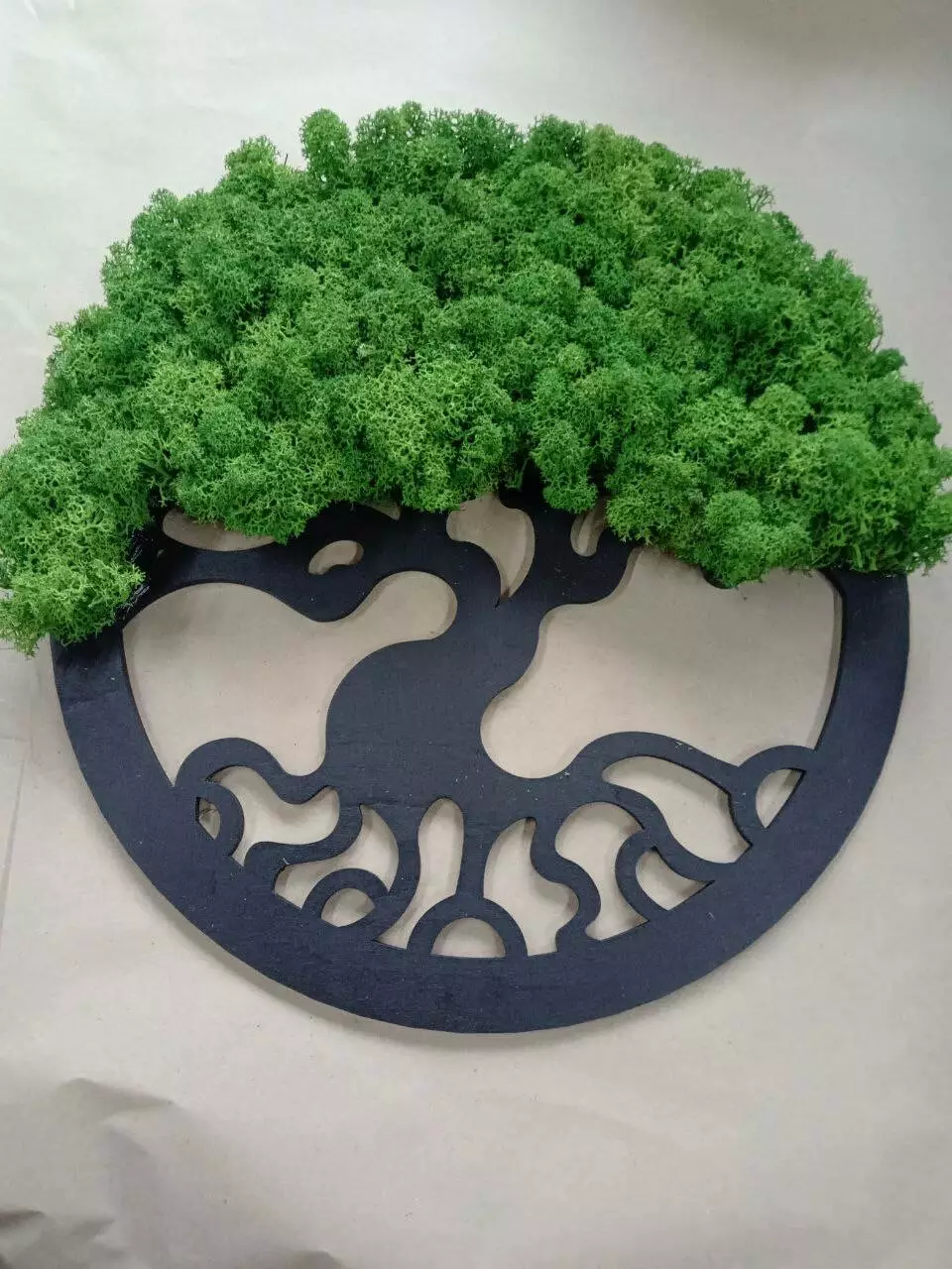 1. Материал: Основа панно изготовлена ​​из фанеры, которая выкрашена в белый цвет. Эта основа надежно удерживает стабилизированный мох и придает эстетичный вид изделия.
