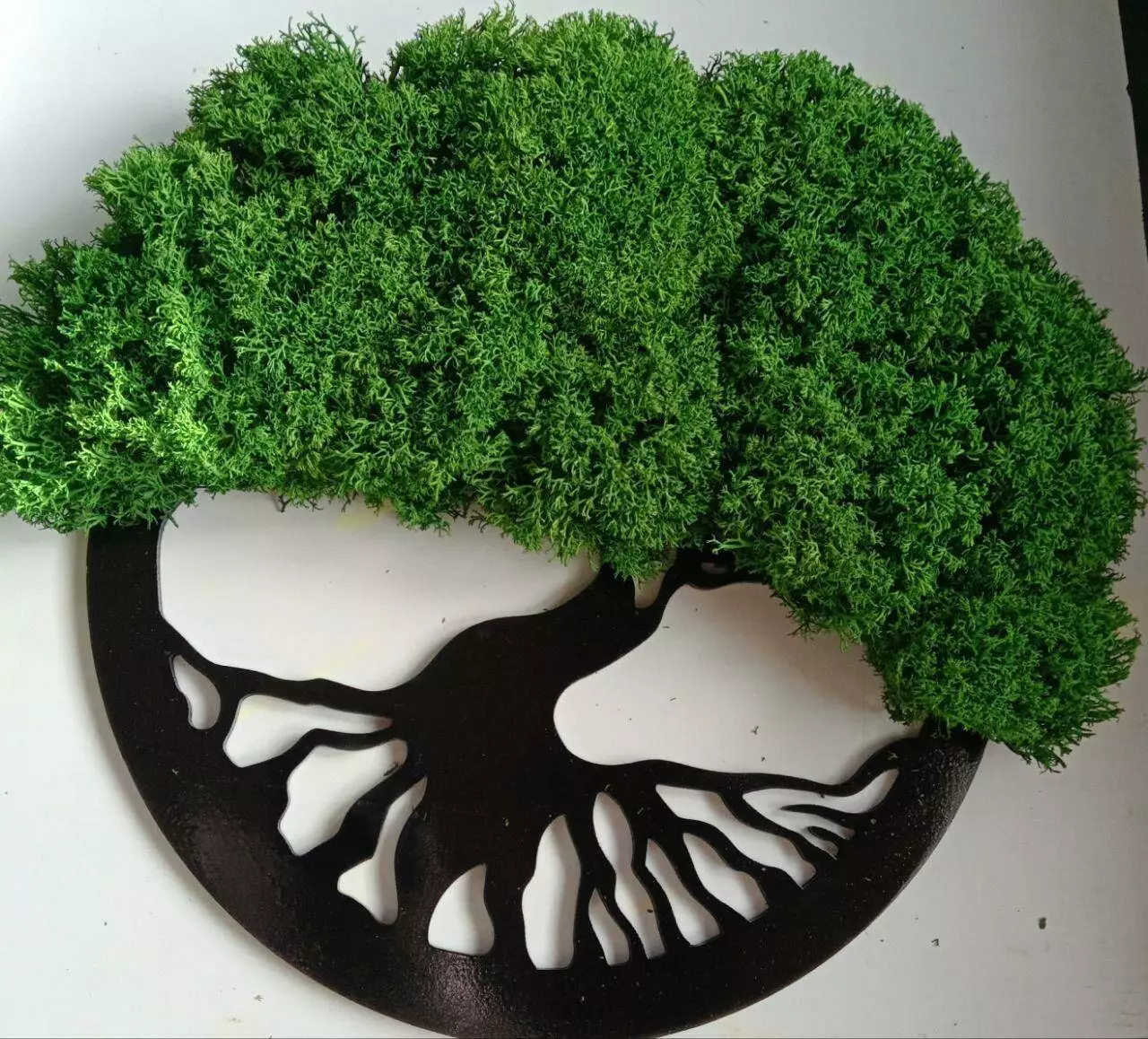1. Материал: Основа панно изготовлена ​​из фанеры, которая выкрашена в белый цвет. Эта основа надежно удерживает стабилизированный мох и придает эстетичный вид изделия.