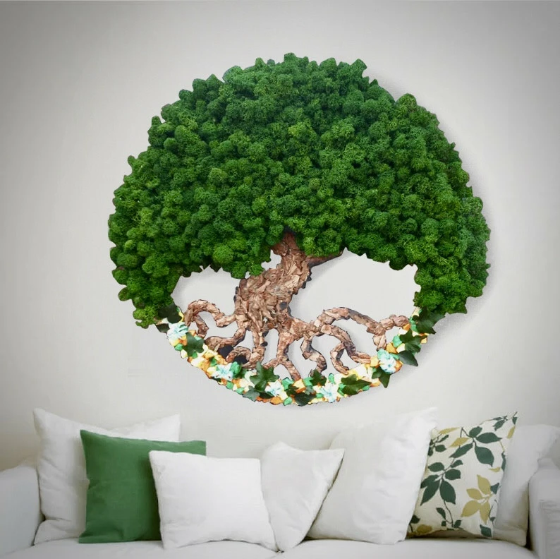Декор со стабилизированным мхом придает помещению индивидуальность,